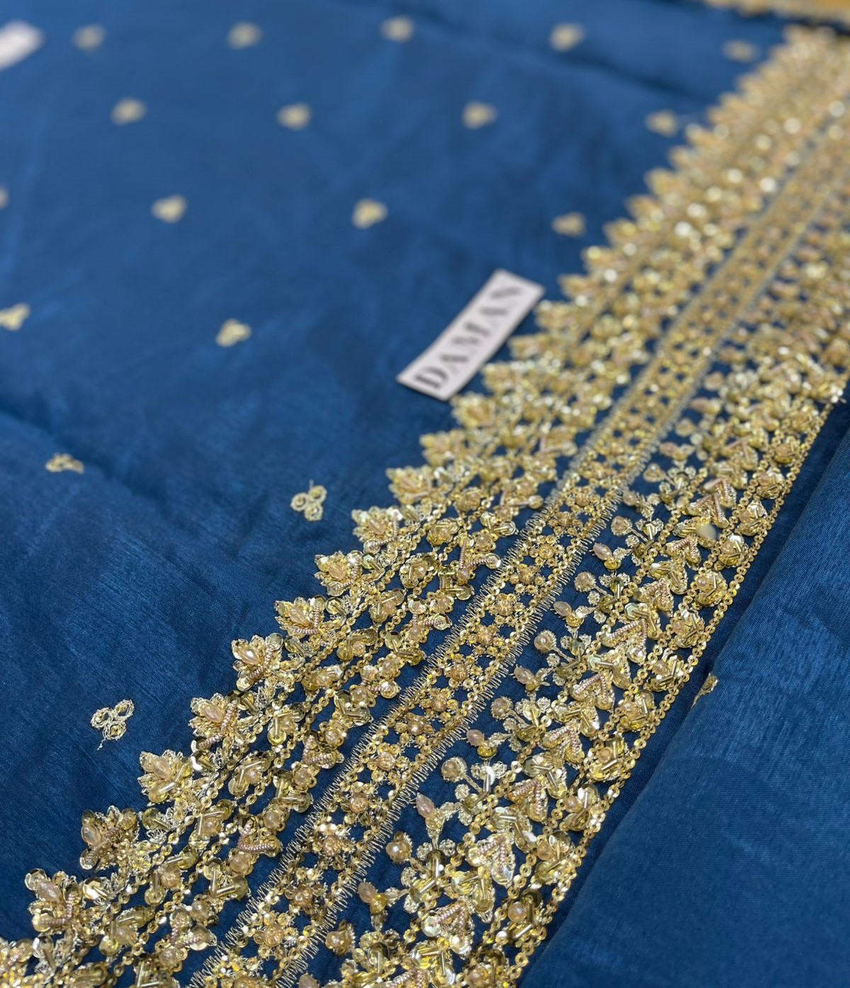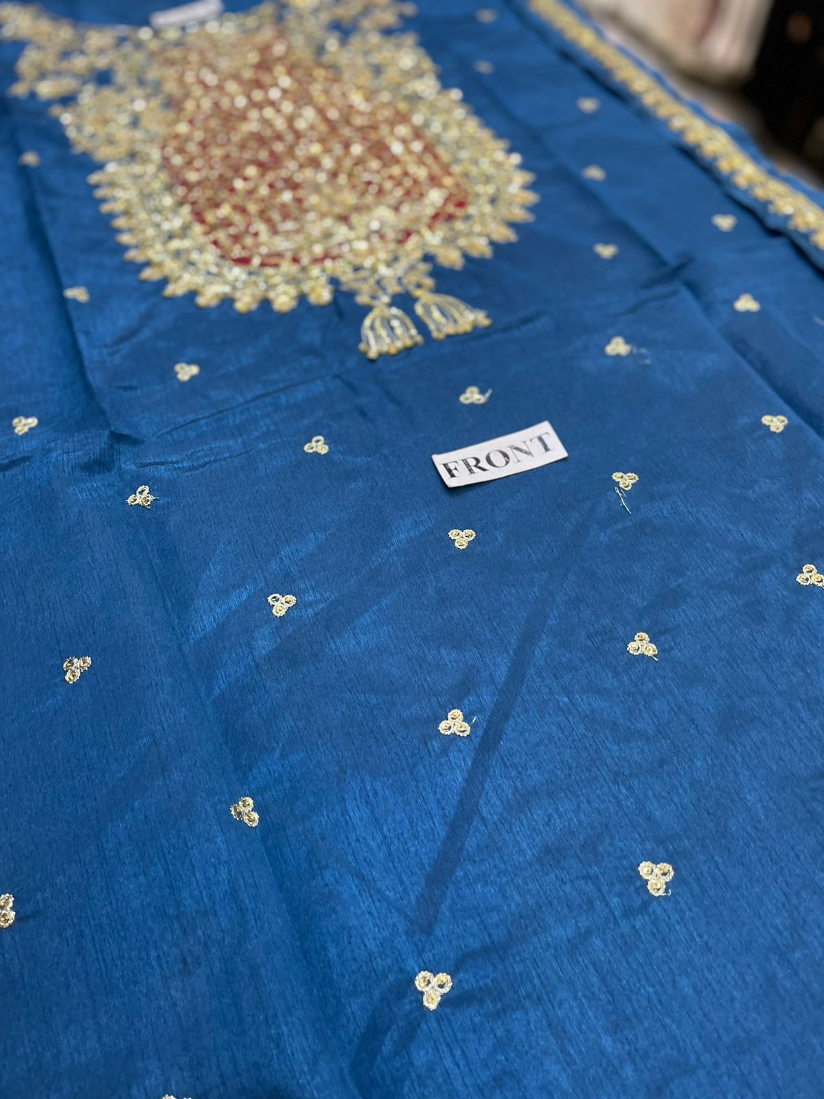 - EMBROIDERED AND HAND EMBELLISHED FRONT ON KATTAN-SILK.