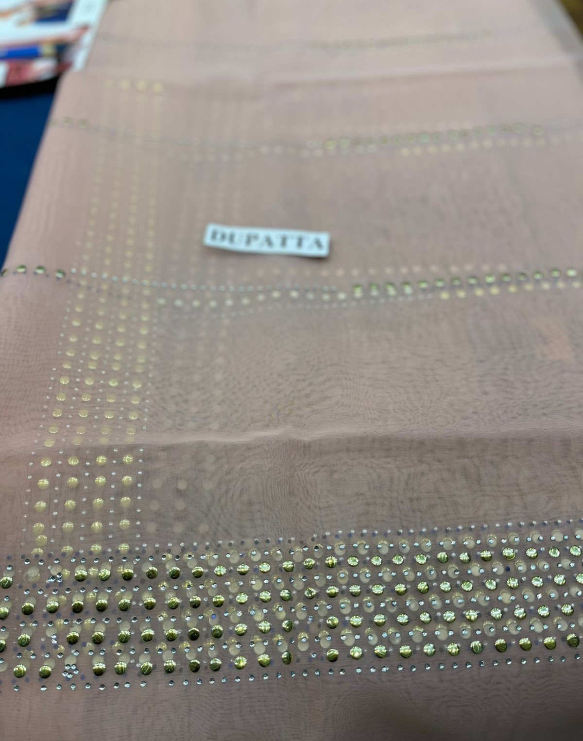 - ORGANZA DUPATTA WITH MOQESH WORK.